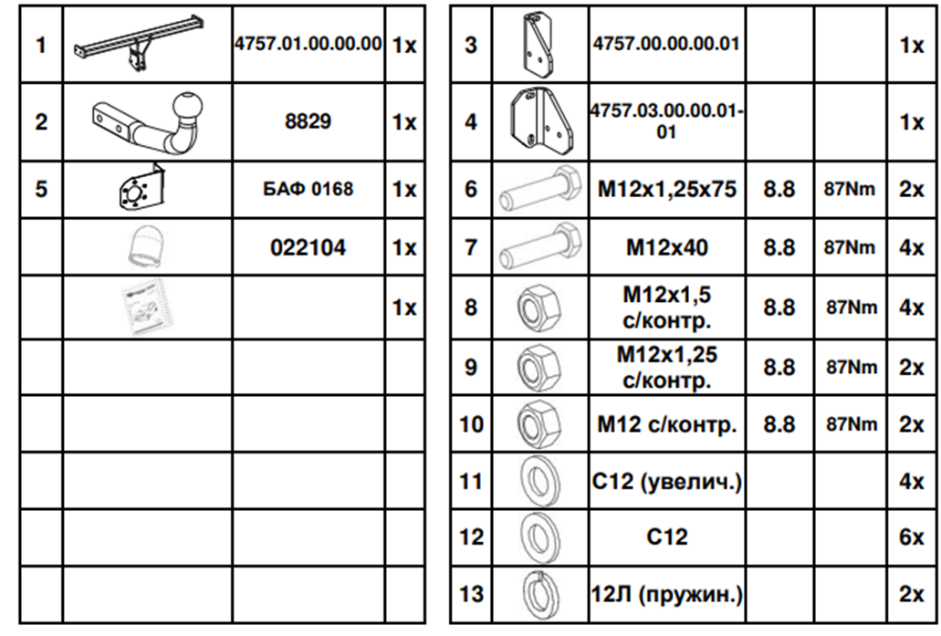 Грузоподъемность фаркопа 4757-A на БМВX1 Ф48 2015-2022, БМВ 2-Сериас Актив Турер Ф45 2014-, БМВ 2-Сериас Гран Турер Ф46 2015- рассчитывается теоретически и подтверждается динамическими испытаниями. Максимальная масса буксируемого прицепа 2000кг. при статической вертикальной нагрузке на шар 80кг. Фаркоп с типом шара: A на BMW X1 F48 2015-2022, BMW 2-Series Active Tourer F45 2014-, BMW 2-Series Gran Tourer F46 2015-, удобен в эксплуатации, благодаря своей съемной части, при этом основная рама с кронштейном фаркопа скрыты за бампером и за габариты автомобиля не выступают.