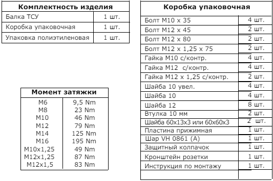 4. После пробега 1000 км с прицепом проверить затяжку всех резьбовых соединений ТСУ.