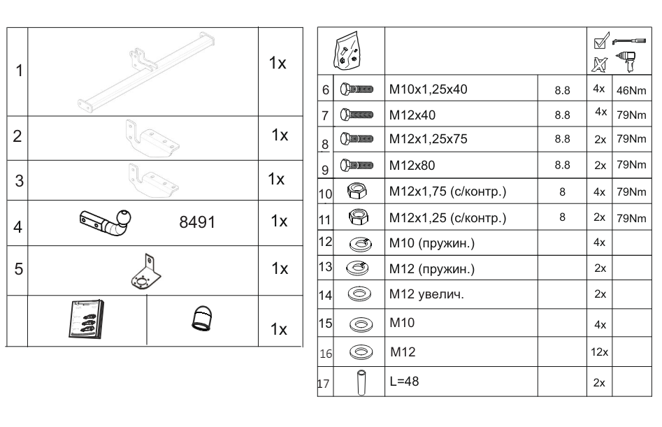 4. После пробега 1000 км с прицепом проверить затяжку всех резьбовых соединений ТСУ.
