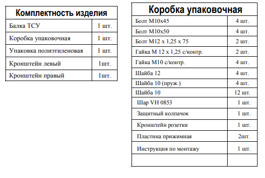 Комплектация фаркопа 3949-A: