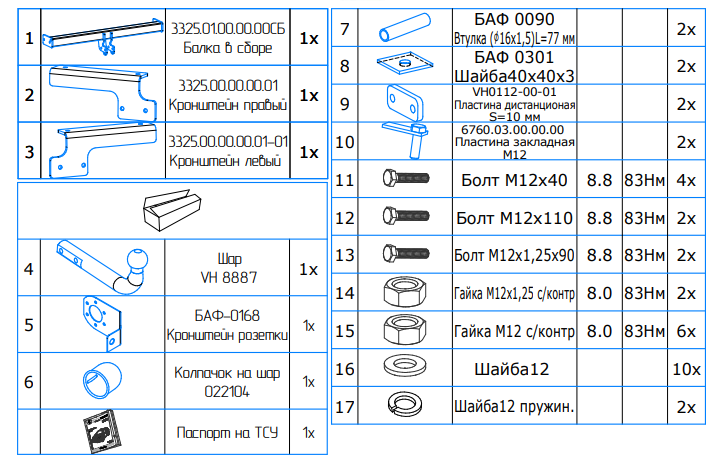 Рекомендуем производить монтаж фаркопа (ТСУ) в специализированных центрах по установке доп. оборудования с соответствующей сертификацией, не смотря на полноценную комплектацию фаркопа которая позволит вам установить его сразу же после получения. Так вы гарантированно получите необходимые документы для ГИБДД, гарантию на установочные работы и сам фаркоп