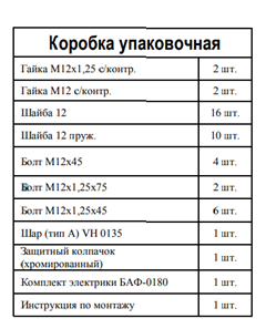 Комплектация фаркопа 4239-A: