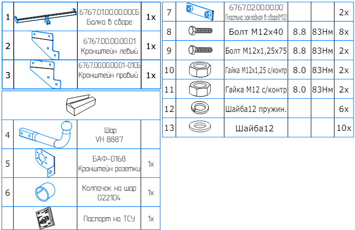 4. После пробега 1000 км с прицепом проверить затяжку всех резьбовых соединений ТСУ.