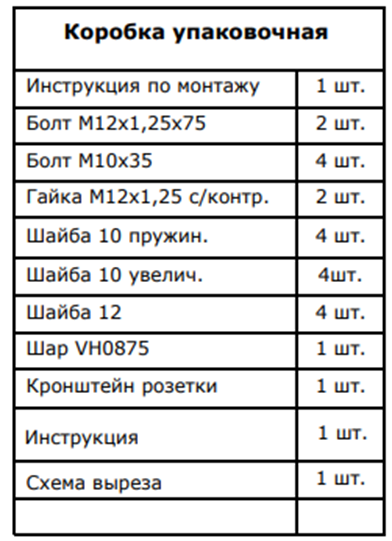 Комплектация фаркопа 3967-a: