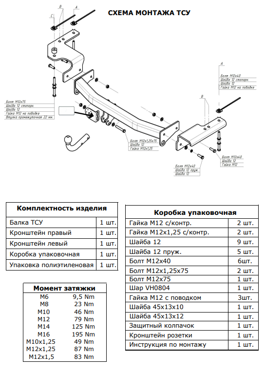 Рекомендуем производить монтаж фаркопа (ТСУ) в специализированных центрах по установке доп. оборудования с соответствующей сертификацией, не смотря на полноценную комплектацию фаркопа которая позволит вам установить его сразу же после получения. Так вы гарантированно получите необходимые документы для ГИБДД, гарантию на установочные работы и сам фаркоп