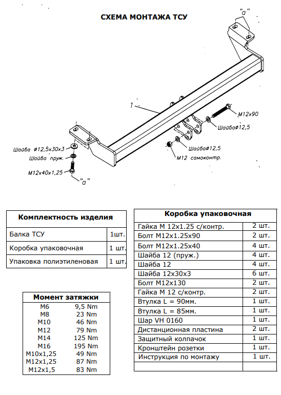 4. После пробега 1000 км с прицепом проверить затяжку всех резьбовых соединений ТСУ.