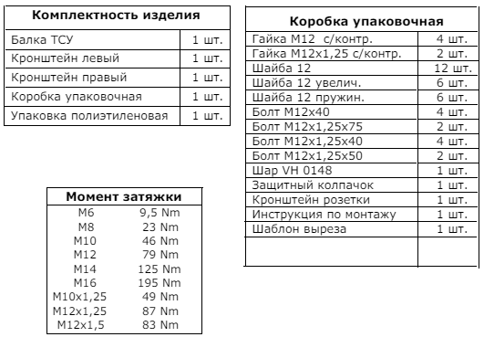 4. После пробега 1000 км с прицепом проверить затяжку всех резьбовых соединений ТСУ.